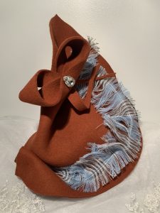 Awarded Inspiring Creative Milliner Oct 2021 by Katherine Elizabeth London Hat designer – A felt hat design inspired by vintage hat style and Grange Over Sands railway station as inspiration for the design.